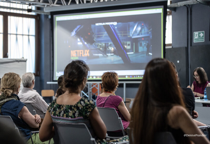 Attraverso esempi concreti tratti dal Corso Executive in Audiodescrizione realizzato dalla Civica Scuola Interpreti e Traduttori Altiero Spinelli con il sostegno di Netflix, il pubblico potrà scoprire come si scrive e si collauda un’audiodescrizione, come si selezionano le immagini da restituire in parole, e come si costruisce un testo in grado di rendere visibile l’invisibile.